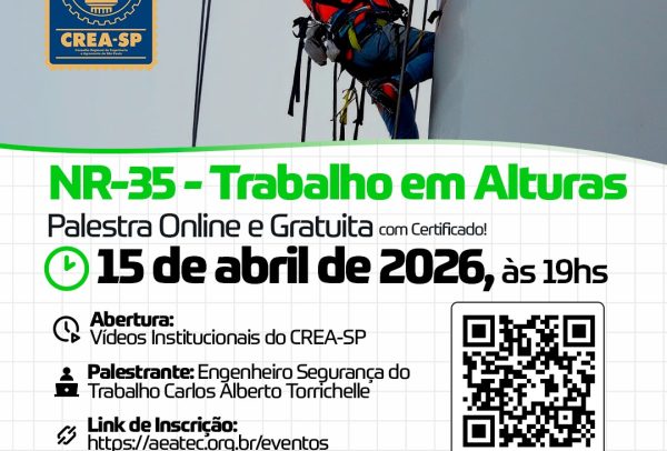🚨 Atenção, profissionais! Convite Especial 🚨 A Associação dos Engenheiros de Carapicuíba (AEATEC), em parceria com o CREA-SP, convida você para a nossa Palestra Online e Gratuita: NR-35 – Trabalho em Alturas. Esta é uma excelente oportunidade para se atualizar sobre as normas de segurança, aprimorar seu currículo e garantir a excelência nos seus projetos. […]