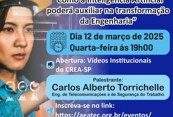 Convite para Palestra “Como a Inteligência artificial poderá transformar a Engenharia Prezados Profissionais de Engenharia, Temos o prazer de convidá-los para a palestra” Como a Inteligência artificial poderá transformar a Engenharia”, que será realizada no dia 12 de março de 2025, às 19h – online Sua participação é de grande importância para enriquecer e fortalecer[…..]
